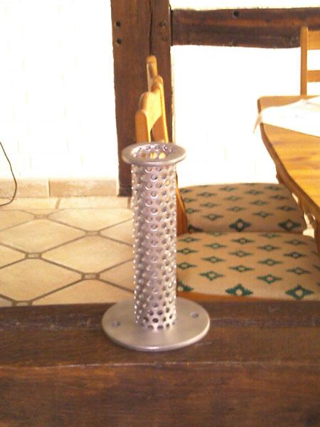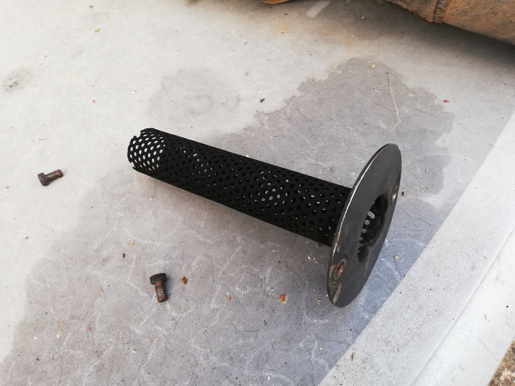 Besteht nur aus einer runden Platte mit einem angeschweißten Lochblech für Dämmwolle!