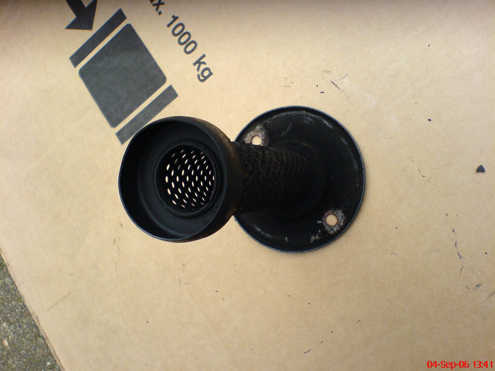 Und dann in der Mitte noch ein grosses Loch,je nach gewünschter Lautstärke..Mit einem22er Loch ist das Ansauggeräuch bereits lauter,und ich kann problemlos des Nachts zur Arbeit fahren,ohne das halbe Dorf zu wecken.Dieses Teil einfach anschrauben ohne Dichtung ohne alles. Und nun viel Spass beim Basteln. Gruss Volker.
