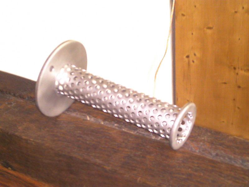 Besteht nur aus einer runden Platte mit einem angeschweißten Lochblech für Dämmwolle!